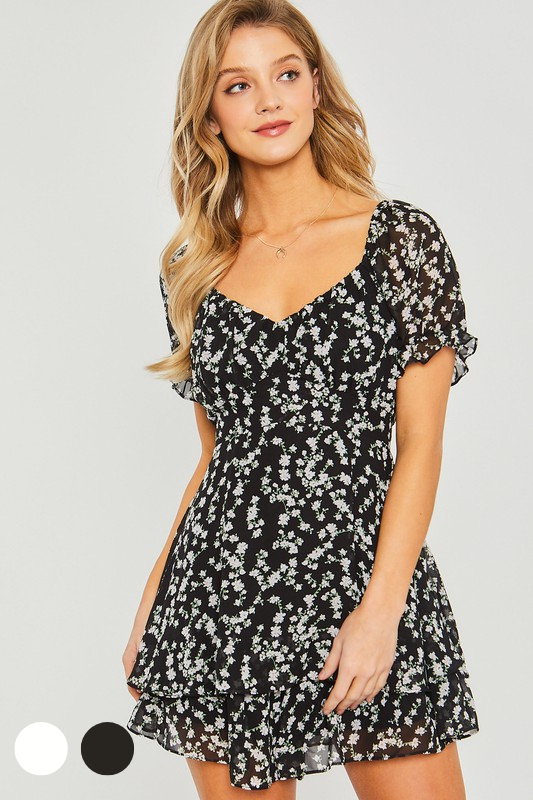 Floral Chiffon Puff Sleeve Tie Waist Romper