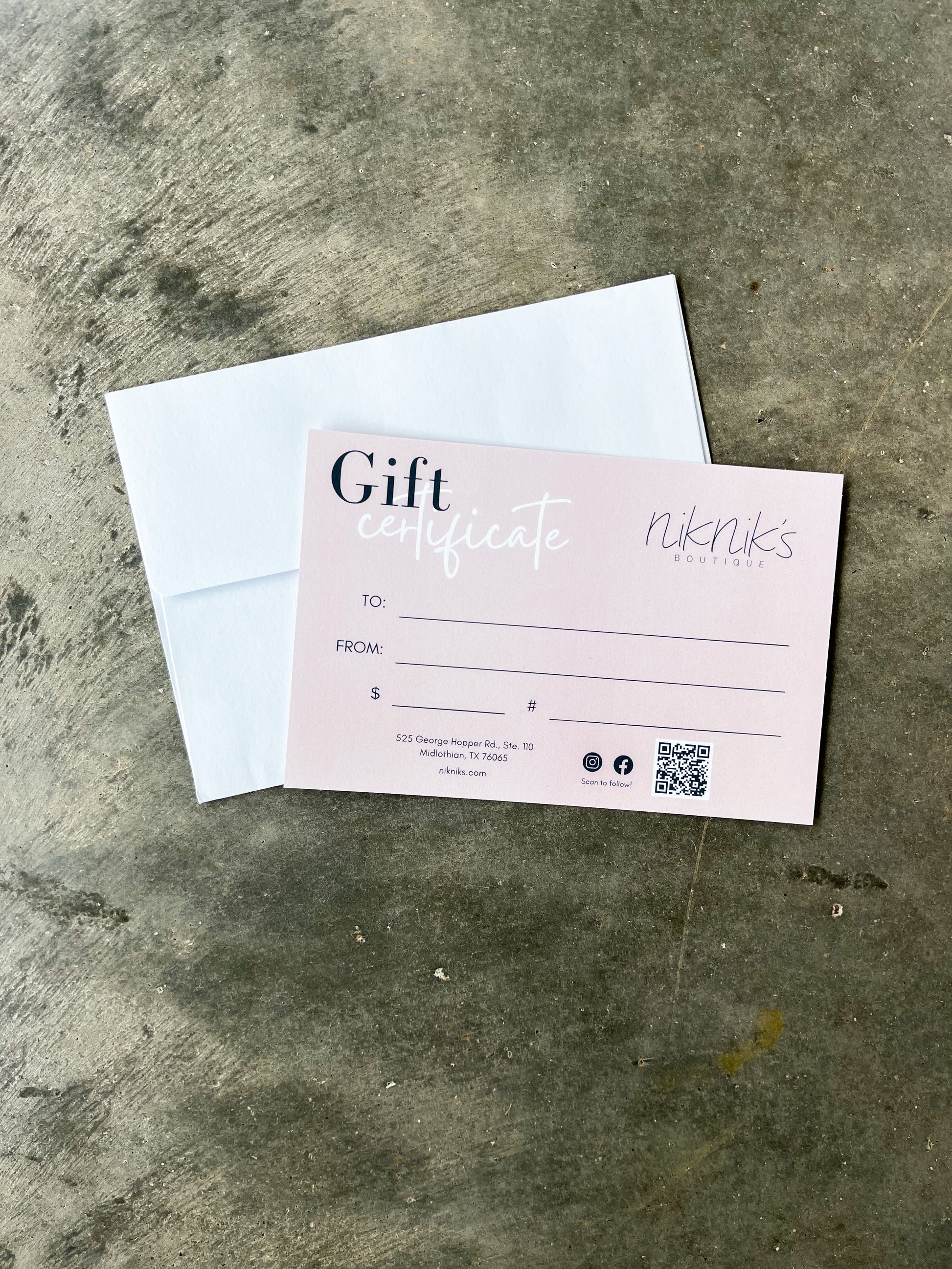 - Gift cards are only redeemable at NikNik's Boutique or on nikniks.com